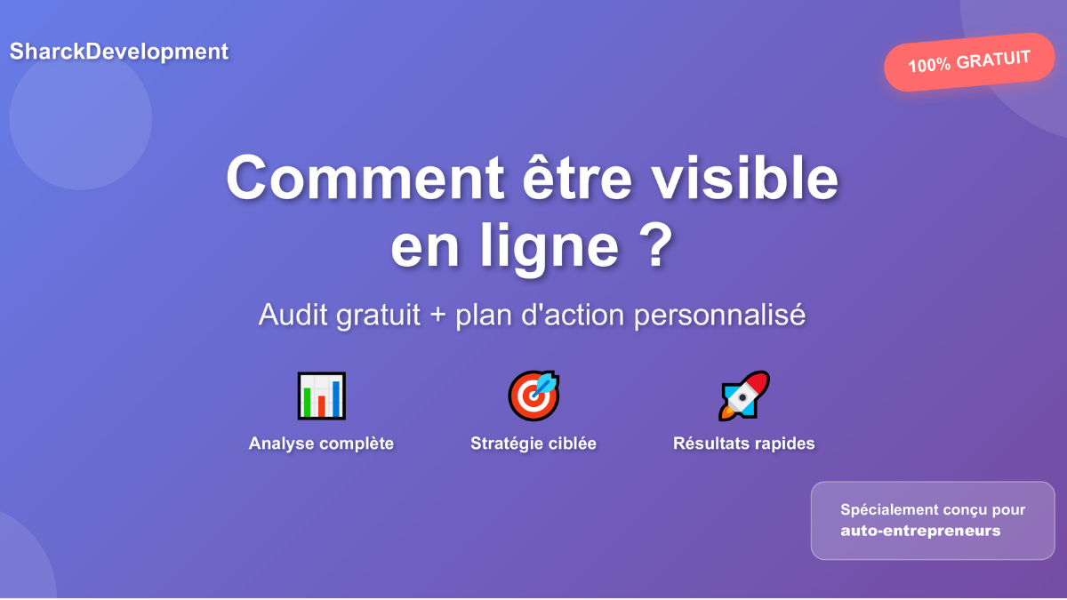Plus de 73% des auto-entrepreneurs perdent des clients car ils ne sont pas visibles en ligne. Notre scan gratuit analyse votre site web et vous révèle exactement comment l'améliorer.